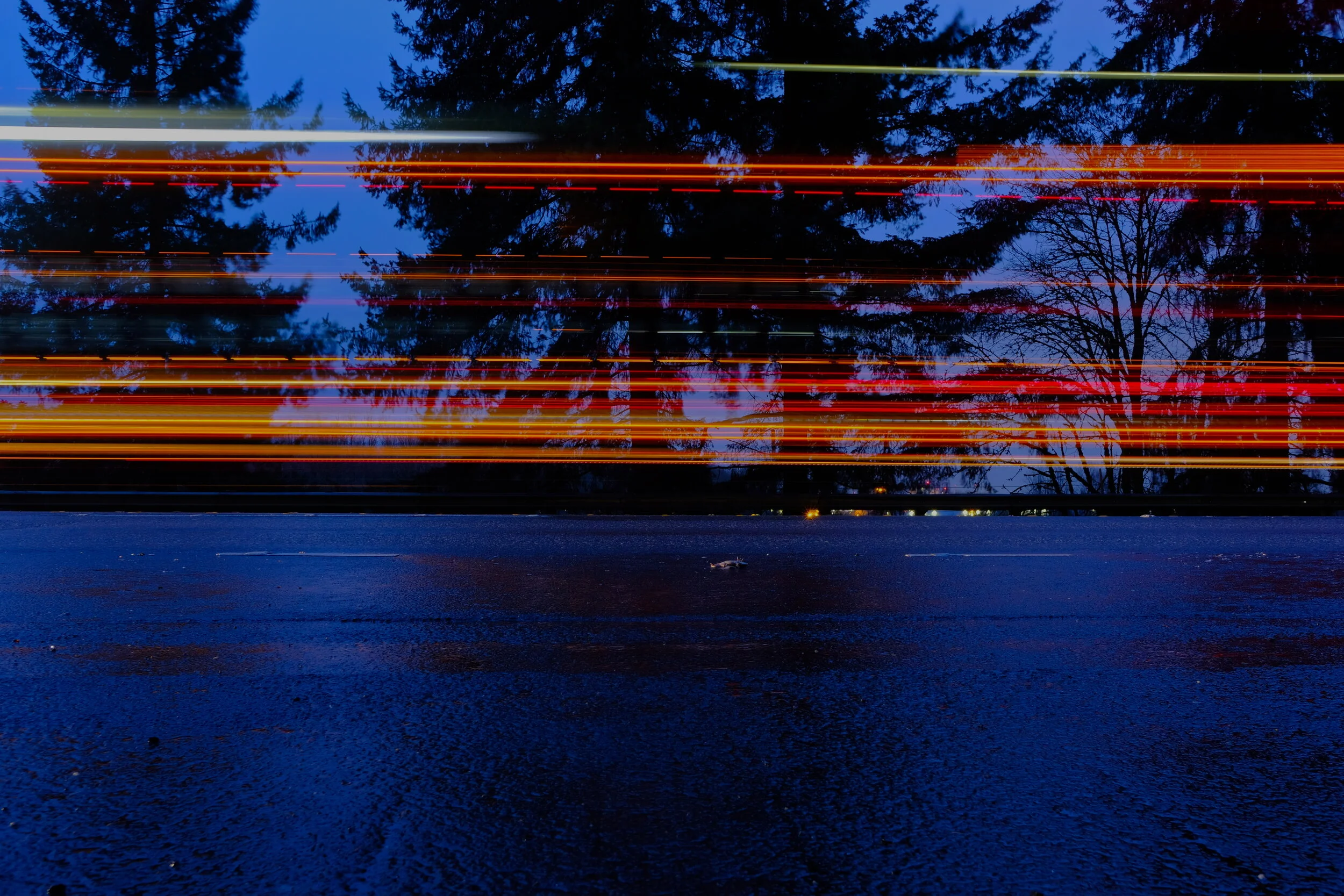 A curb-top view a red-legged frog confronts, having come down from their quiet forest home to breed in the riverside wetland, only to find their way blocked by the bedlam of flying steel and the roar of angry rubber.